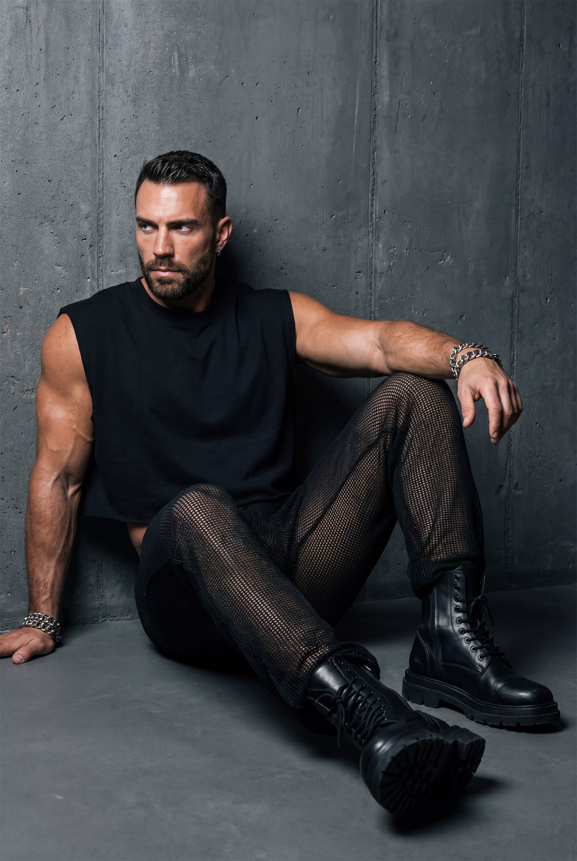 Crop tops, chain harnesses, leather accessories, chunky sneakers, or platform boots. Perfect for pride parades, summer music festivals, underground warehouse parties, gay nightlife, or any occasion where your look makes the statement.