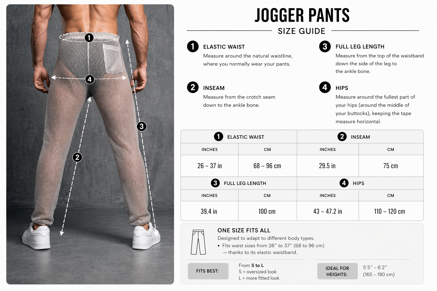 The engineered mesh construction moves with your body, catches the light, and sculpts your silhouette. A loose jogger fit with elastic waistband keeps you comfortable all night long.